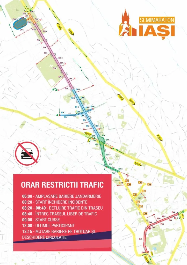 Traseul prevede tură, cu punct de întoarcere în Piața M. Eminescu.